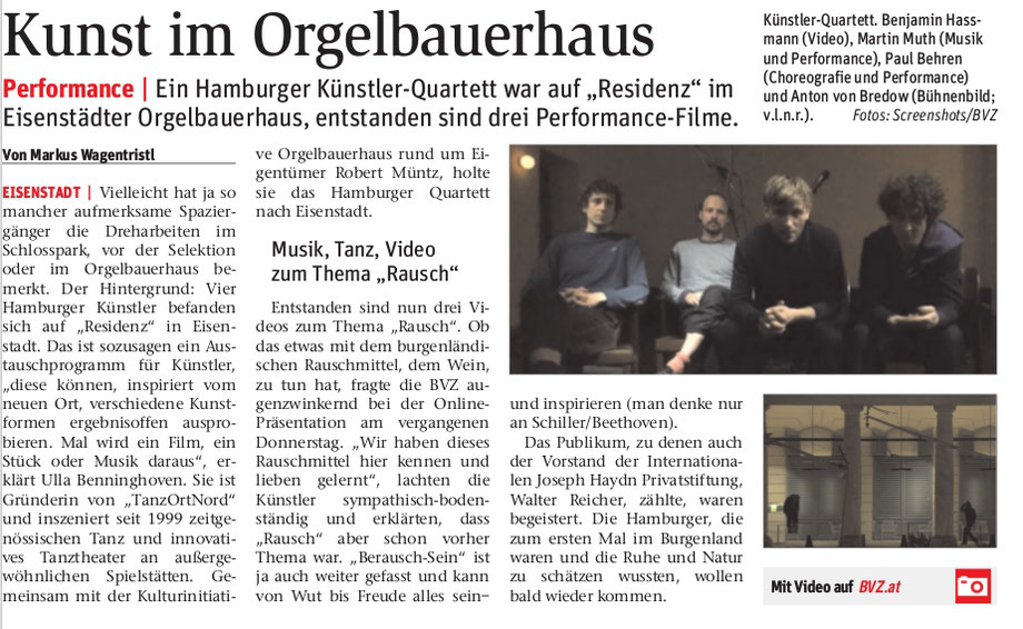 Vorproduktion des Stückes "RauschEn" in der Artist Residency des Orgelbauerhauses